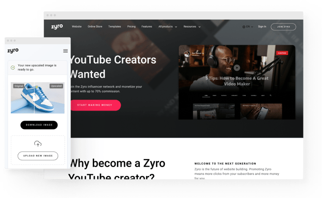 Zyro offers a wide range of AI and other online success tools which landing pages require maintenance and updates. For example, Image Upscaler is one of the AI tools that generate a lot of traffic. While people were enjoying the upscaled result of the image they uploaded, it was noticed that the experience of comparing an initial and final result of an upscaled image could be improved. For this reason, I updated the landing page's functionality with an image comparison slilder.